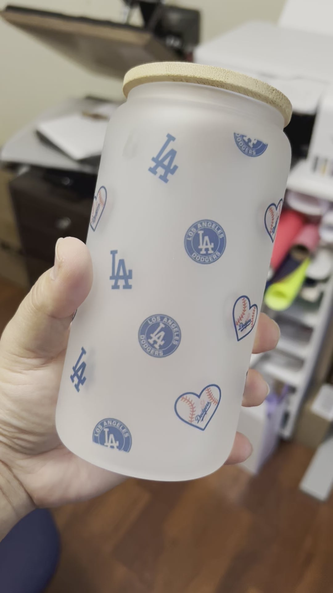 Pick this custom-made original design to be sublimated into a frosted-style glass tumbler with a bamboo lid and plastic straw!